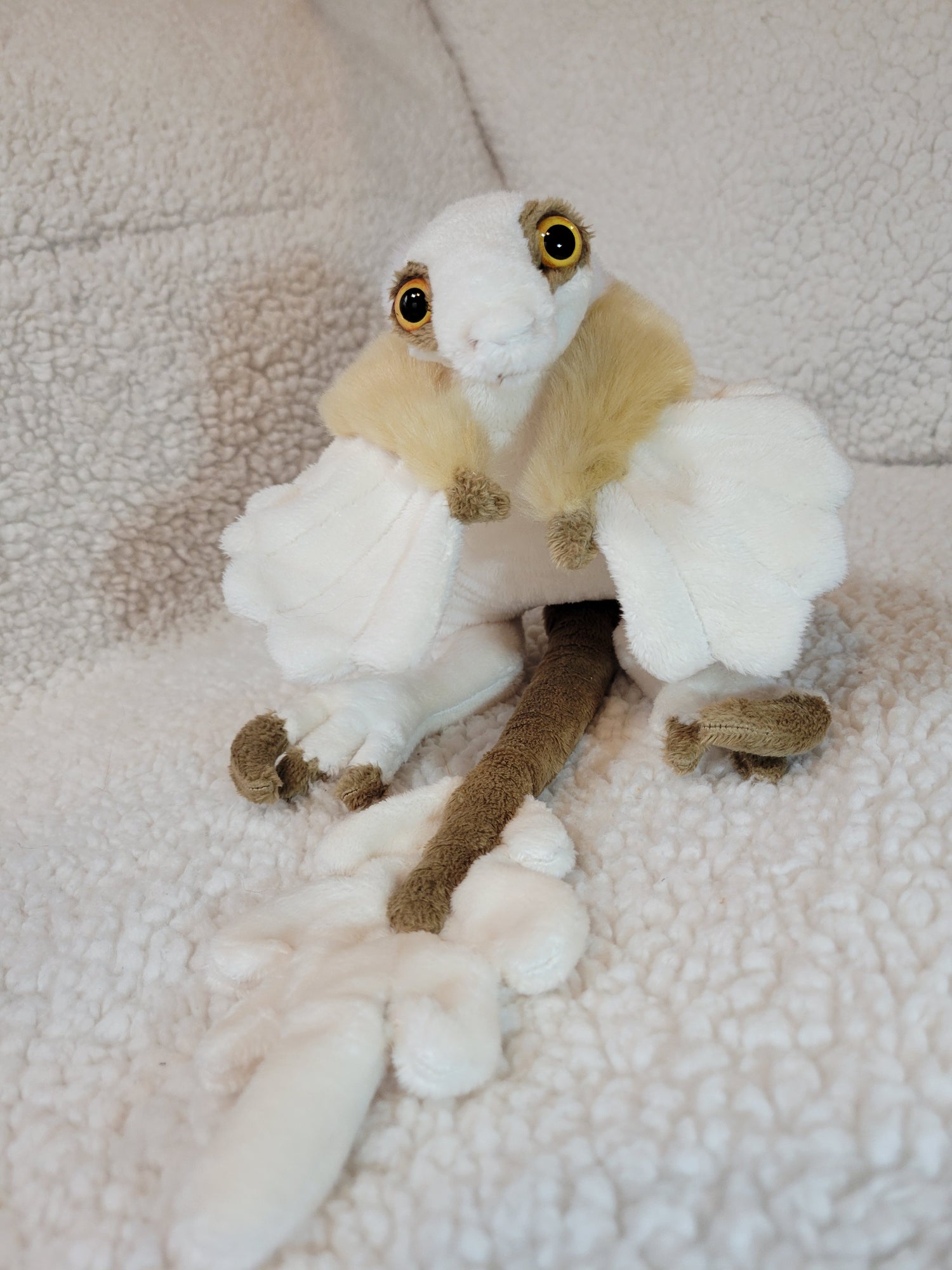 This is a handmade art plush, made with minky, faux (fake) fur, stuffing, and poly pellets. It has been weighted, making it a cuddly friend! Each plush is hand detailed, and should NOT be machine washed or given to children under 12 years of age. Rough play or incorrect washing may cause the detailing to fade.